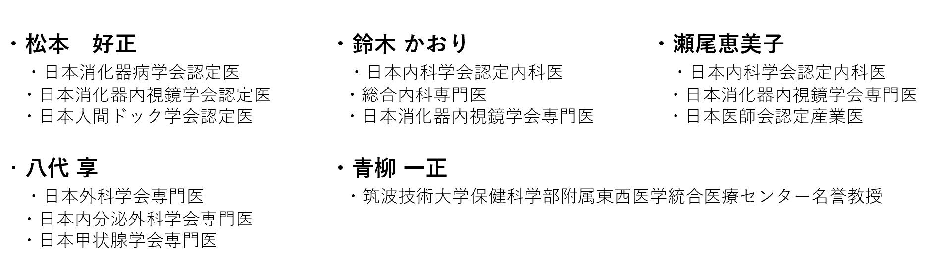 ・内科 ・消化器内科(内視鏡) ・循環器内科 ・アレルギー科 ・内分泌外科(甲状腺専門)・漢方内科 ・腎臓内科